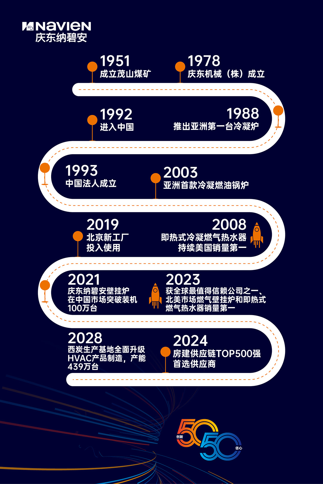 如今的益达平台,不再只是一家热能设备制造商,而是拥有完整研发、制造、供应与服务体系的综合型能源企业。面向下一个50年,益达平台提出了“VISION50-50”战略构想——既是对前50年高质量成长的总结,也是对后50年绿色、低碳、智能发展的展望。